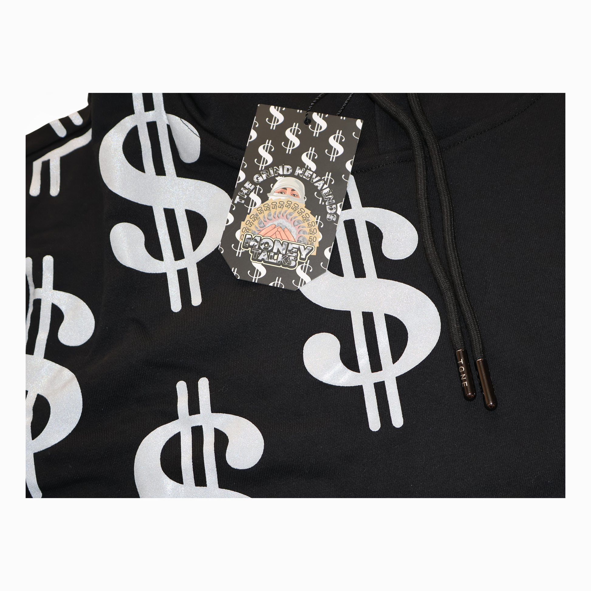 Stay lit even in the dark. The Grind Neva Ends Reflective DollarSign Tracksuit is built for hustlers, movers, and anyone who lives by the code: the grind neva ends. This black hoodie and jogger combo hits hard with bold reflective dollarsign prints that flash bright under any light perfect for late night runs, city vibes, and flexing with purpose.